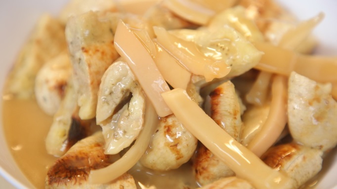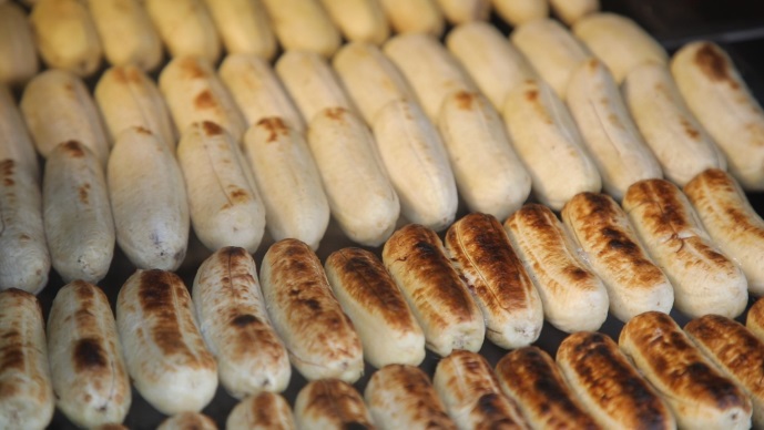 ซึ่งกล้วยพันธุ์นี้ จะมีรสหวาน ไม่ฝาด มาปิ้ง ให้เปลี่ยนสี และสุกเท่ากัน ประมาณ 15 นาที โดยทีเด็ดที่นี่ นอกจากกล้วยแล้ว น้ำที่ราดก็ต้องเด็ดตีคู่มาไม่แพ้กัน