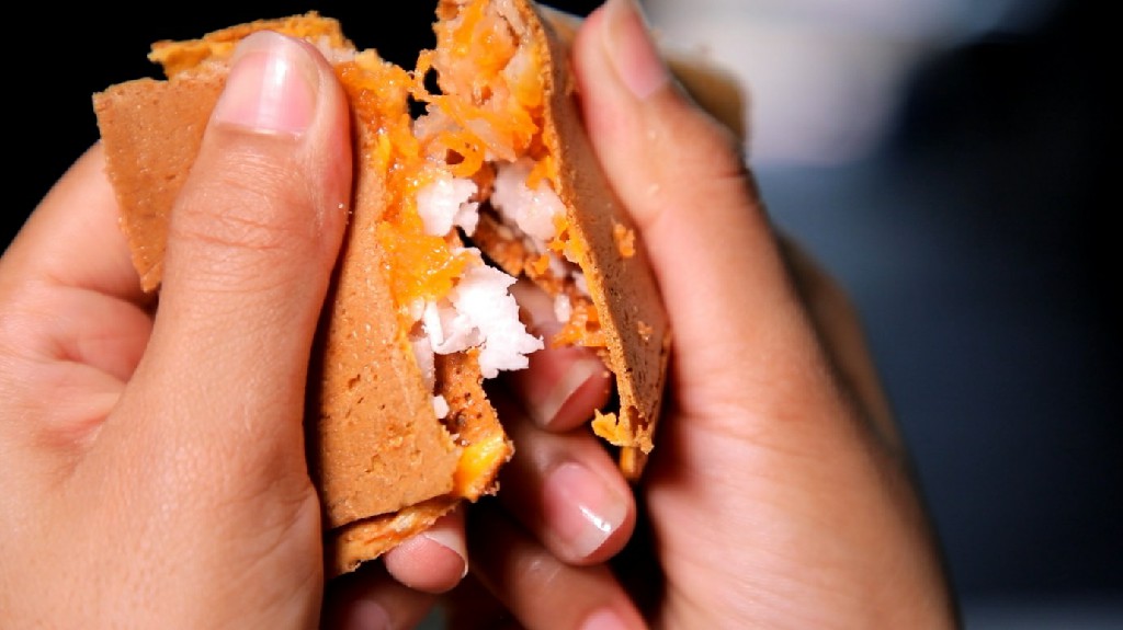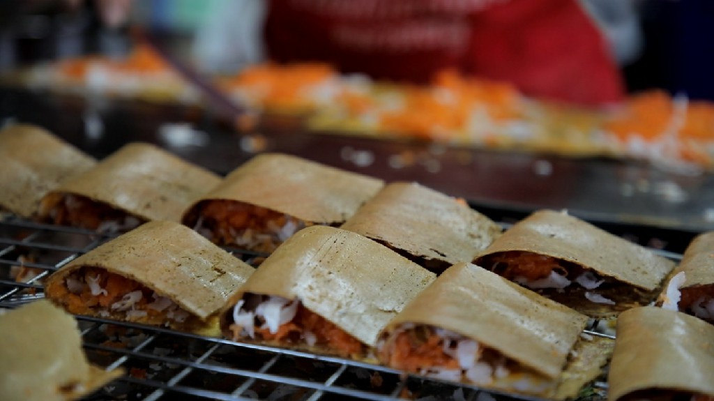 ขนมเบื้องแผ่นยักษ์ ไส้ทะลัก ต้อง! “สรินทร์ทิพย์ ขนมเบื้องไทย ตลาดพลู”