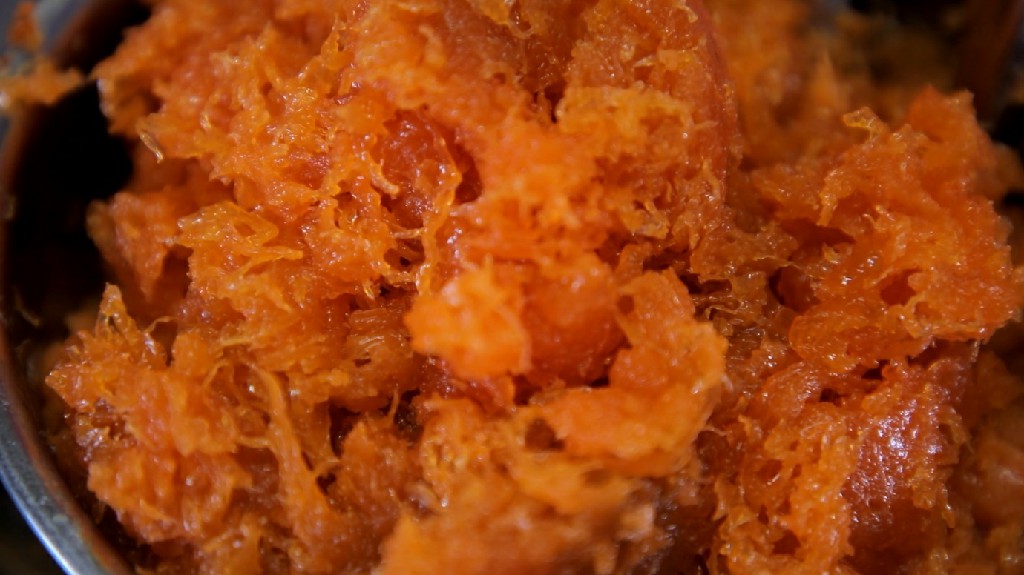 อีกหนึ่งร้านขนมเบื้อง ที่เราจะได้ กลิ่นหอมๆของมะพร้าวทึนทึก ที่เป็นมะพร้าวแก้ว รวมถึงจะได้กลิ่นของน้ำตาลมะพร้าว กลิ่นของมันกุ้ง และยังได้เคี้ยวเนื้อกุ้งจริงๆ รวมถึงได้สัมผัสกับฝอยทองที่มีรสชาติหวานกลมกล่อม ไม่หวานปี๊ดจนเกินเบอร์