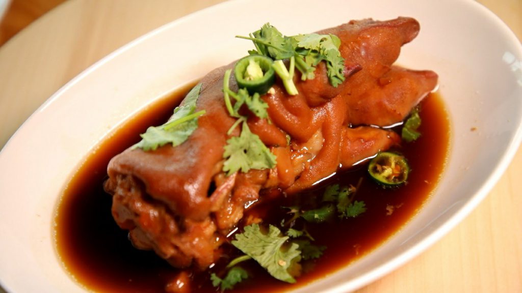 เปิดประเดิมความแปลก ที่คนรักขาหมูต้องหลงรัก ……ซึ่งความแปลกที่ว่านี้ ก็คือ ขาหมูที่นี่ จะต้มด้วยน้ำมะพร้าวกะทิแทนน้ำเปล่า เพื่อให้ น้ำขาหมูมีความหอม กลมกล่อม