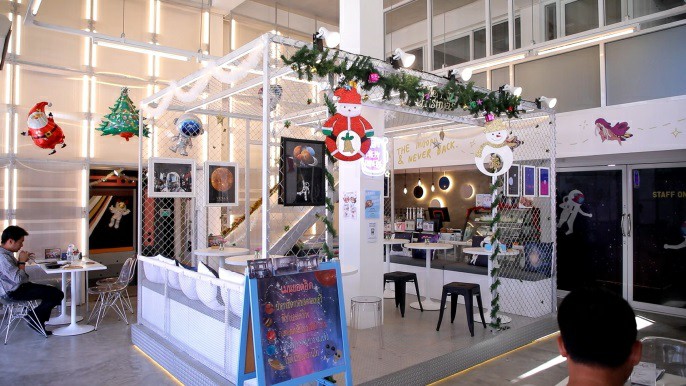 ใครที่อยากทะยานขึ้นอวกาศ ภายใต้ ตัวร้านที่รีโนเวทจากตู้คอนเทนเนอร์เก่า โดดเด่นในธีมแบบกาแล็คซี่ พร้อมอาหาร ที่เข้าธีมในช่วงคริสมาสต์แล้วล่ะก็ ร้าน A-WA-KAD Café’ (อวกาศคาเฟ่) ย่านซอยศาลาธรรมสพน์ 40 พร้อมให้คุณร่วมตะลุยไปเปลี่ยนโลกการกินในช่วงคริสมาสต์แล้วล่ะคร๊าบบบบ