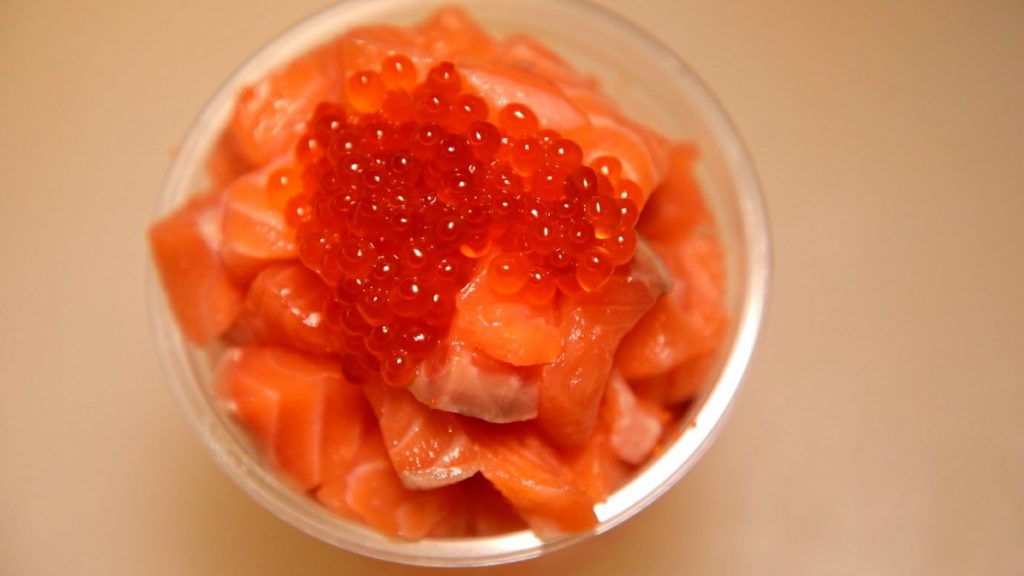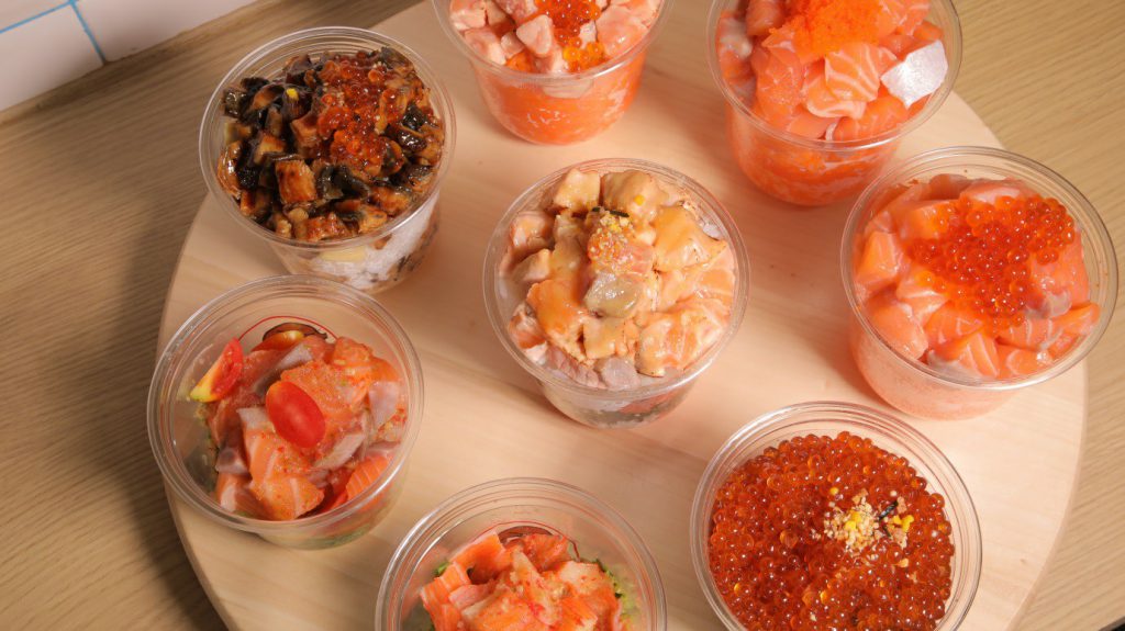 สามารถใส่ถ้วยถือกิน ได้รสสัมผัส ที่เต็มคำไม่แพ้การนั่งกินที่ร้าน วัตถุดิบทั้งหมดนำเข้าจากญี่ปุ่นส่วนปลาแซลมอนจะนำเข้าจากประเทศนอร์เวย์  โดยแต่ละเมนูจะนำมารังสรรค์ดีไซน์ขึ้นใหม่ อารมณ์เหมือนถือไอศครีม เดินกิน แต่ทุกคำล้วนมีกลิ่นอายของข้าวด้ง ทั้งปลาแซลมอน ทั้งไข่ปลาแซลมอน ไข่กุ้ง  และอีกมากมาย  ส่วนอีกหนึ่งอารมณ์ ก็จะเสมือนยกร้านอาหารญี่ปุ่น สไตล์ข้าวด้งมาอยู่บนมือเรานั่นเอง