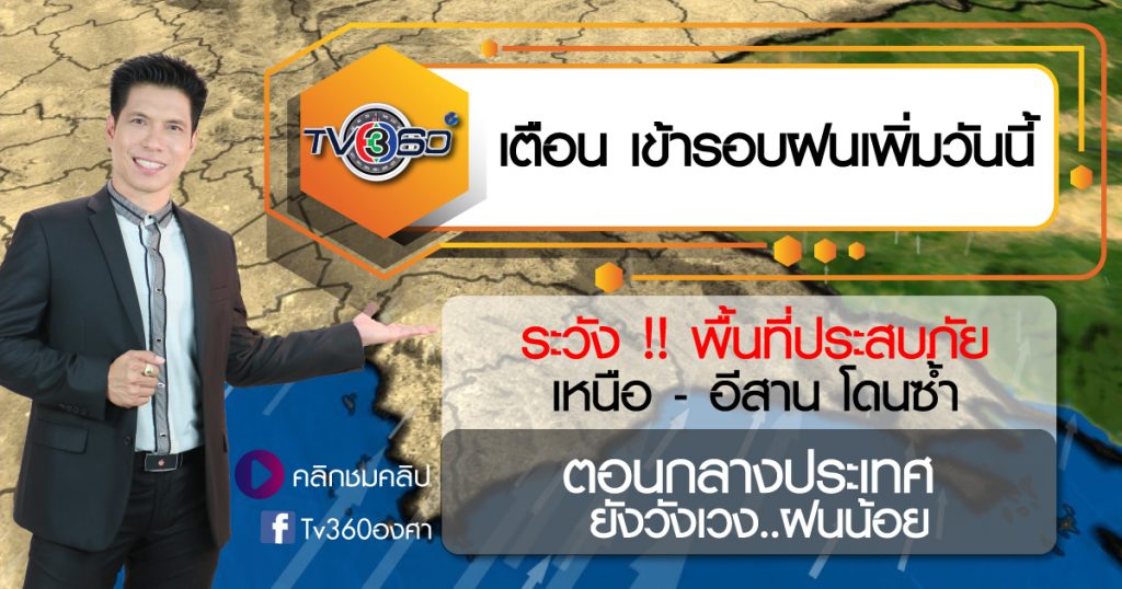 เตือน เข้ารอบฝนเพิ่มวันนี้ ระวัง!! พื้นที่ประสบภัยเหนือ-อีสาน โดนซ้ำ!! ตอนกลางประเทศ ยังวังเวง..ฝนน้อย / รายการทีวี 360 องศา / By พยากรณ์อากาศวันพฤหัสบดีที่ 23 สิงหาคม กับการเตือน..ฝนเพิ่มรอบใหม่ ที่วันนี้ถึงเวลาแล้ว หลังเตือนมาหลายวัน ฟ้าฝนจะเป็นอย่างไร.. ใครยังระบายน้ำท่วมขังไม่จบ มีคำตอบ !! Total Views: 63 , Post Views: 5