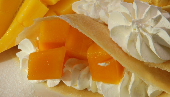 นำมาผสมกับครีม และนม ตีจนเนื้อเนียน กินเข้าไปแล้ว จะได้ความเบา นุ่ม เหมือนกินมะม่วงน้ำดอกไม้ที่เย็นจัด… ได้รสสัมผัสที่แปลกใหม่กว่ากินมะม่วงน้ำดอกไม้ธรรมดาๆ