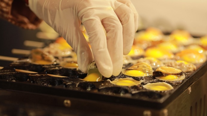 ใช้เตาทอดชนิดพิเศษ มาทาด้วยน้ำมัน และวางไม้เสียบไว้ที่ช่อง จากนั้นก็ตอกไข่