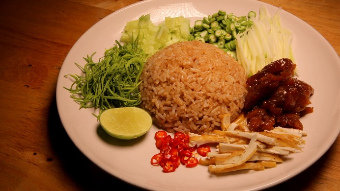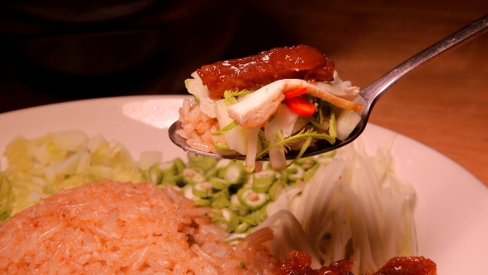 ร้านอาหารเจ ที่ทั้งครอบครัวเจ้าของร้านกินเจ 100% ทั้งบ้าน และไม่อยากให้ลูกค้าที่กินเจ เบื่อรสชาติอาหารจืดๆชืดๆ เลยครีเอทเมนูออกมาได้หลากหลาย ทั้งหมู ทั้งปลา ไม่ว่าจะเป็น ข้าวคลุกกะปิ ที่ใช้กะปิที่หมักจากถั่วเน่า ส่วนหมูหวานทำจากโปรตีนถั่วเหลืองและเคี่ยวกับซีอิ๊วจนได้ที่ รสสัมผัส เหมือนกินข้าวคลุกกะปิ ที่ไม่เป็นอาหารเจ ยังไงอย่างงั้น